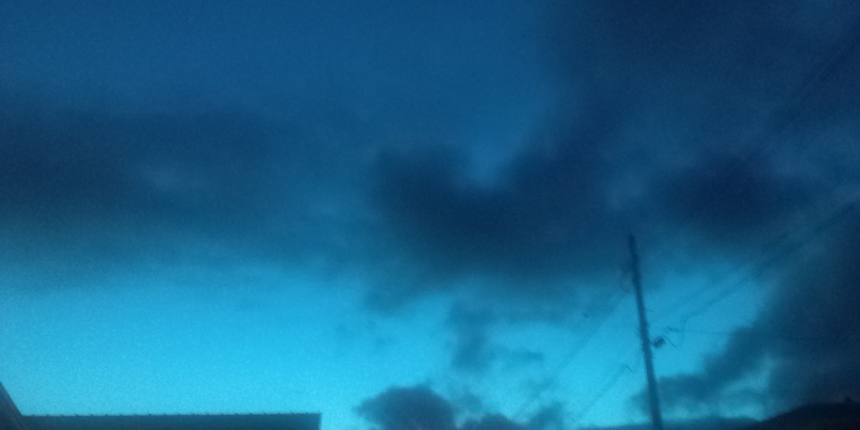 ご飯食べた後、母さんと猫の砂を買いにドラックストアへ。外に出たら凄いあお色で思わず携帯で。ひんやりとした空気だった。空のあお、というよりは水のあおだな、なんて思った。この時はまだ、晩御飯で食べたナポリタンのケチャップが自分の口の周りにべっとりと跡が残っているなんて気が付きもしなかった。そんな一日でした。