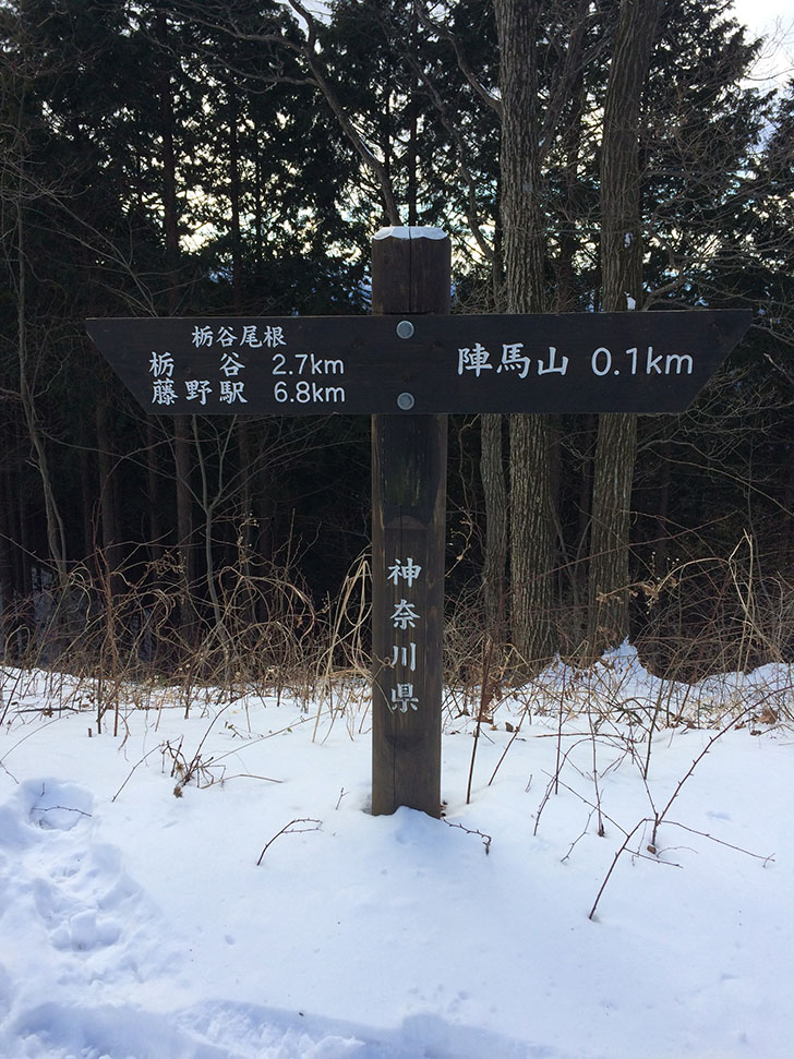 陣馬山到着。天気は良いけれど、やっぱり2月。風が冷たい。