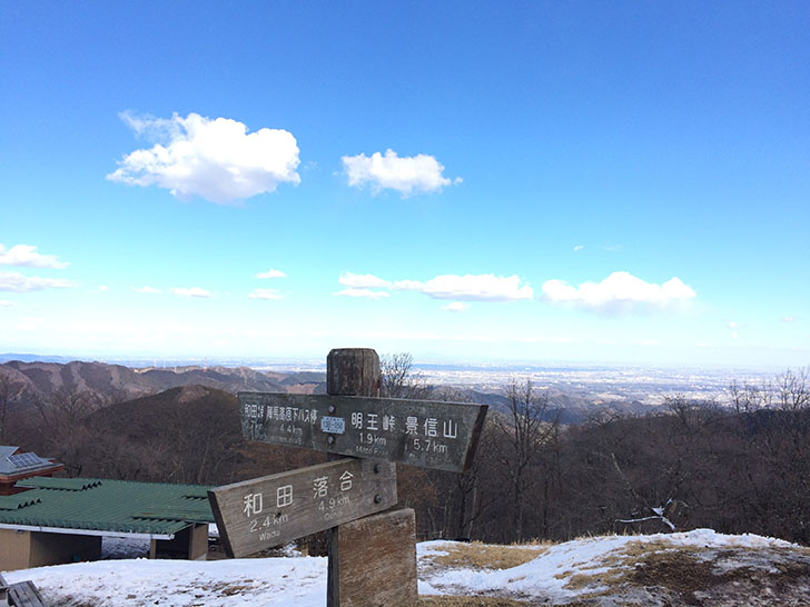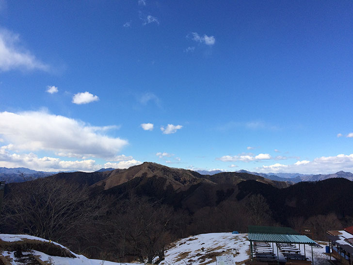 出発が11時前と遅めだったにも関わらず、陣馬山は人が多かった。山頂は晴れていてもご飯を食べるのにベンチに座り動かずにいると途端に体温を奪われるので、フリースのベスト、パーカーの上にダウンを着込んで更にブランケットを膝にかける。持ってきた防寒具は全て使用しました。